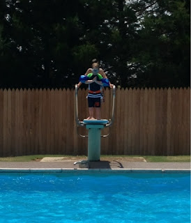 We have swam a lot the past couple of weeks! It seems to be the only way to beat the hot and dry weather. Judson is fearless and Cole is getting very confident in swimming without his floaties on.